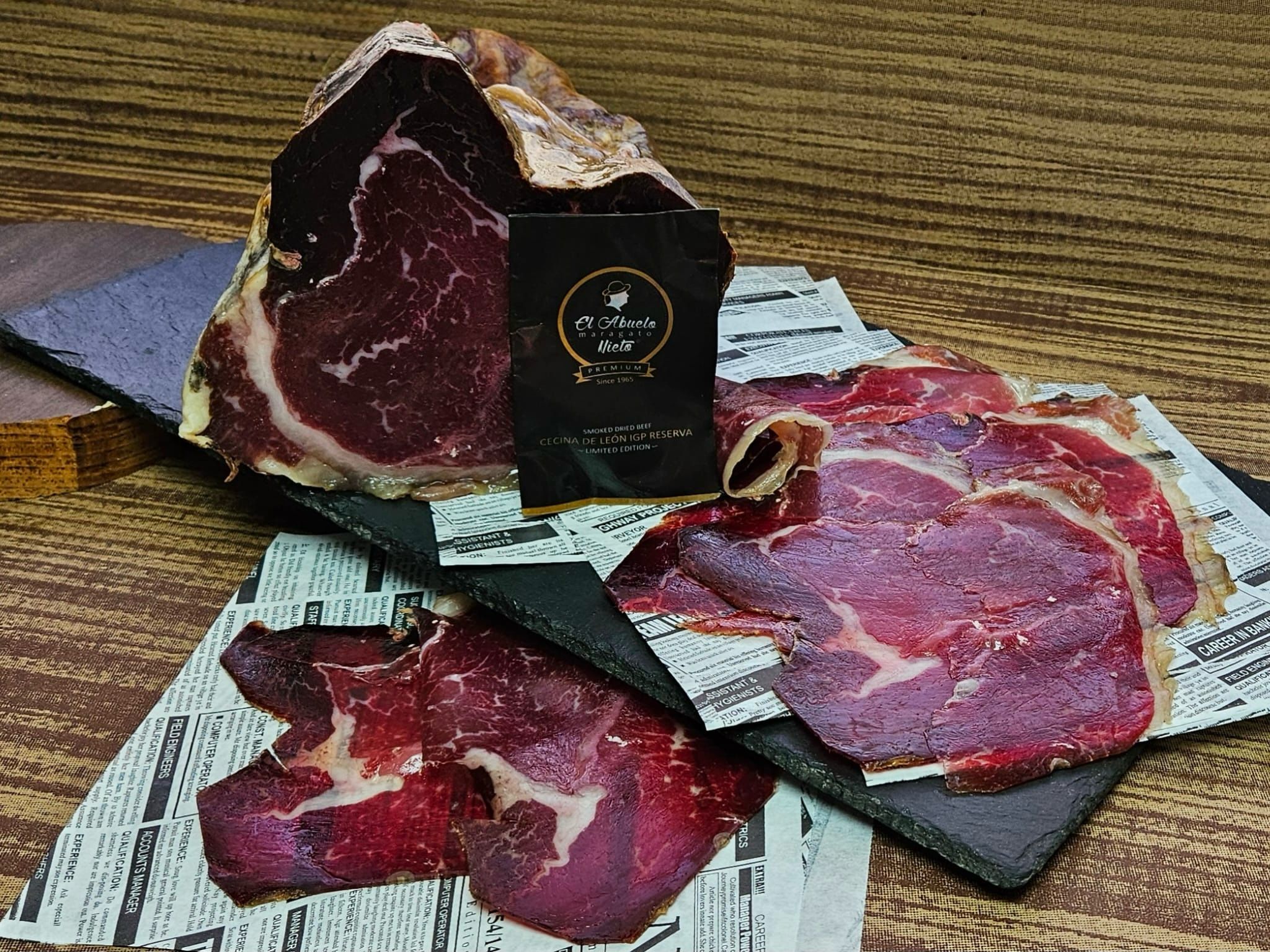 Cecina curada de alta calidad, elaborada con carne magra de ternera seleccionada y curada tradicionalmente con sal y especias naturales. De sabor profundo y suave, con un toque ahumado, ofrece una textura tierna y jugosa en cada loncha.