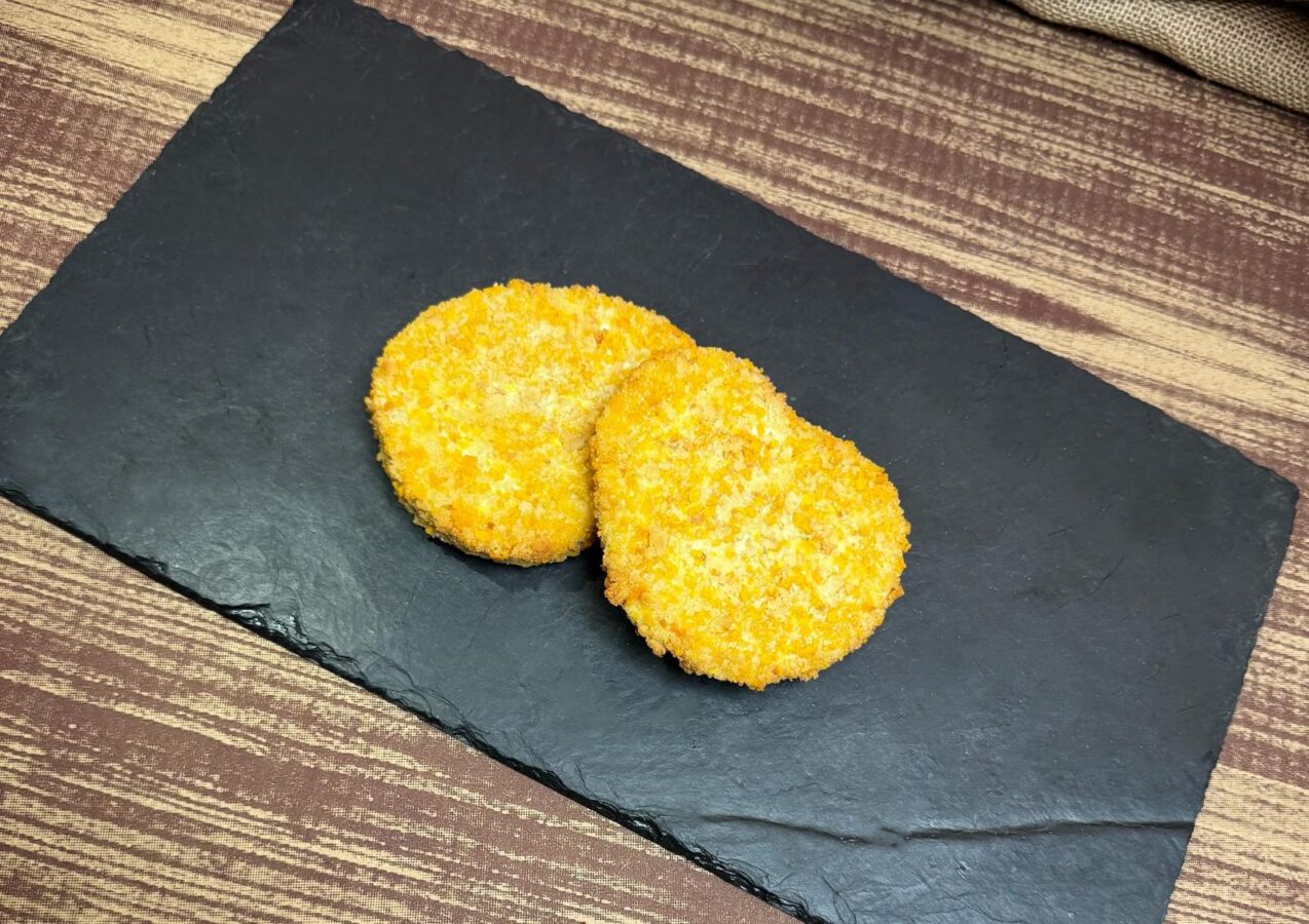 Ingredientes: Carne de pollo, pan rallado, sal, harina, manzana, queso, contiene gluten y lactosa.